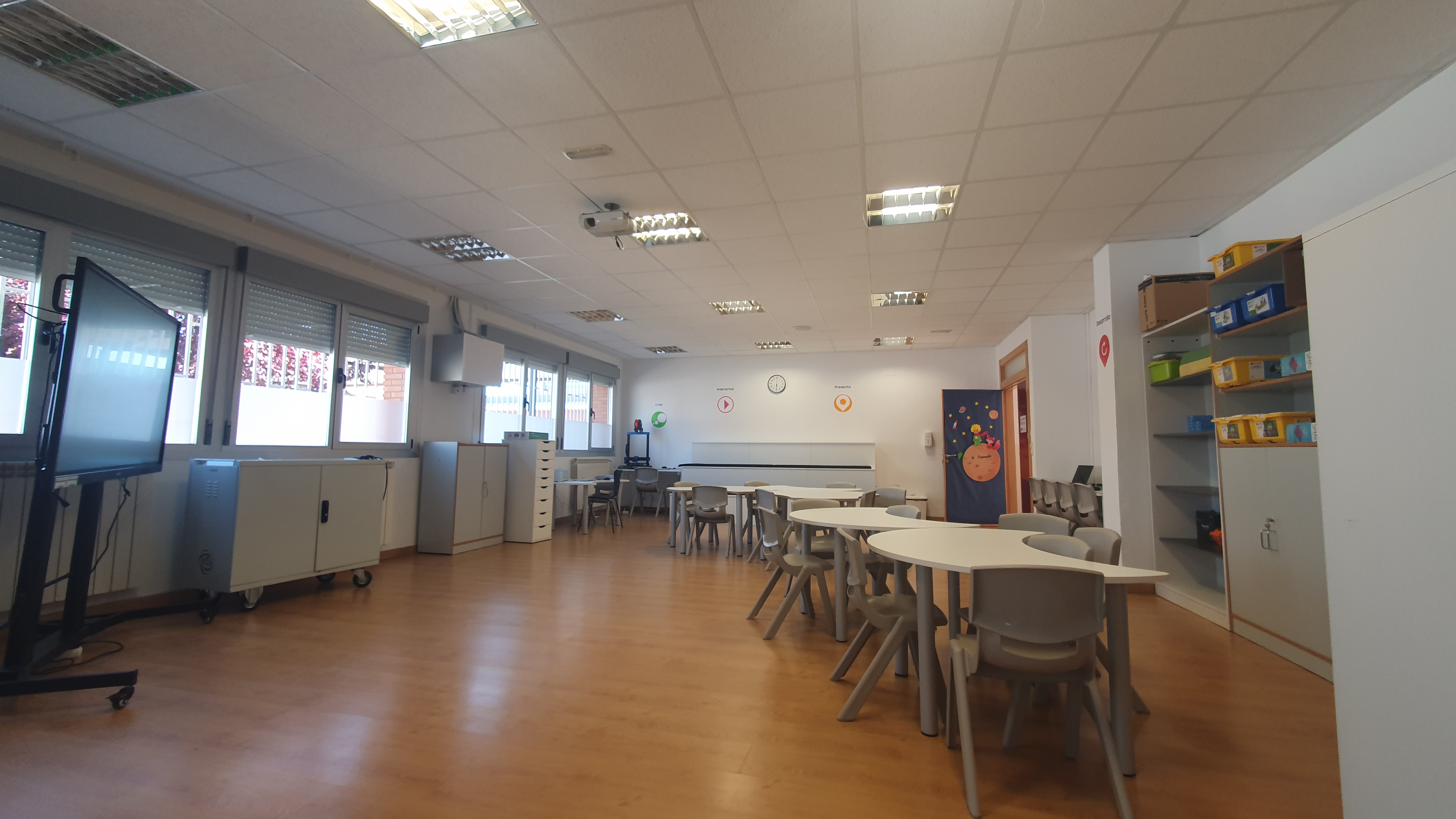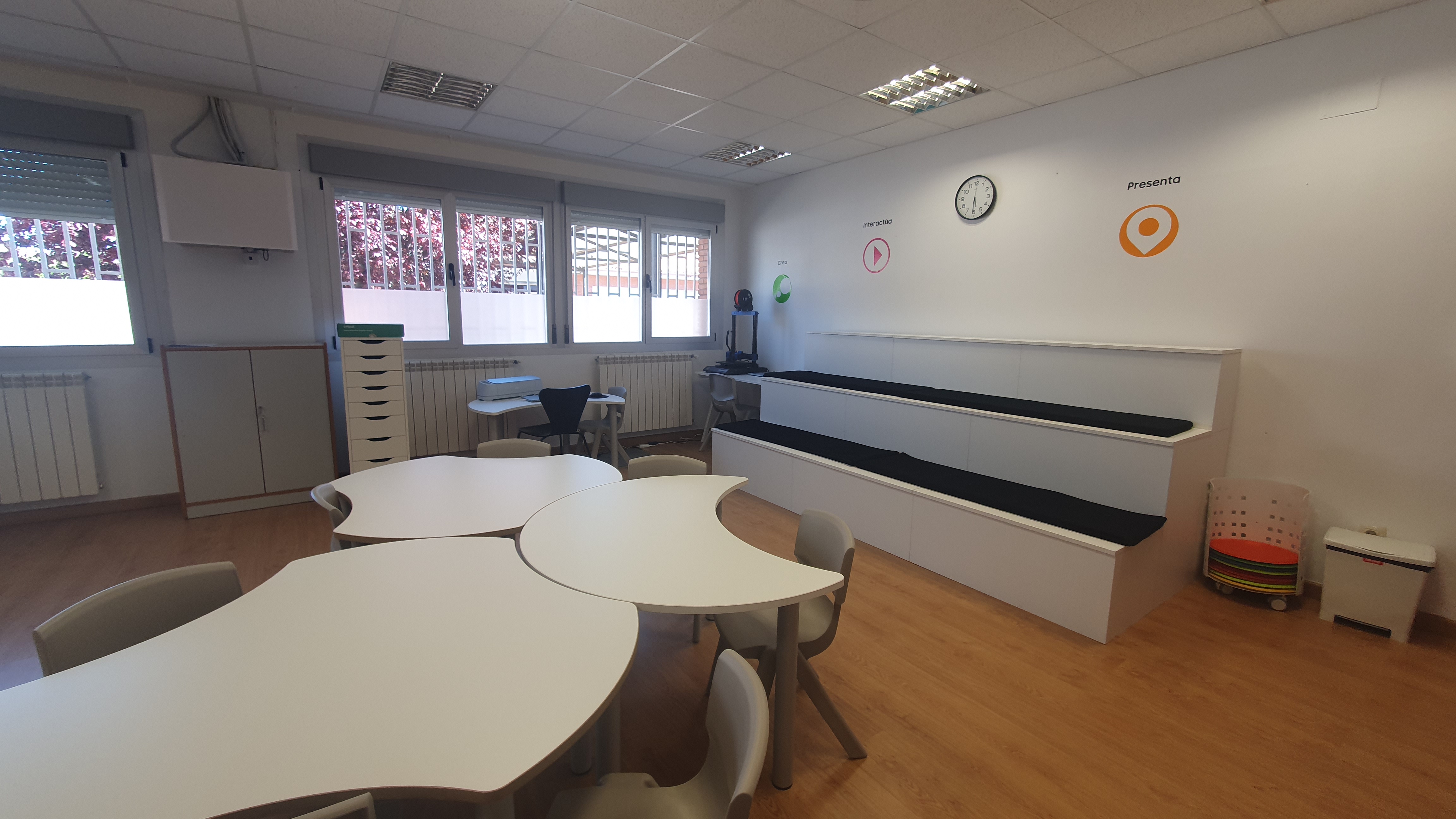 Para ello, se presenta un espacio de aprendizaje flexible y reconfigurable, dividido en seis zonas: Investiga, Explora, Interactúa, Desarrolla, Crea y Presenta.